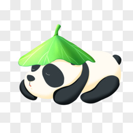 手绘荷叶盖头睡觉的熊猫免抠素材