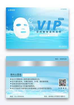 蓝色水会员卡vip卡美容美容院会员卡美容v面膜ip会员卡