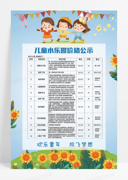 蓝色卡通儿童乐园价格表价目表海报儿童乐园价格表海报