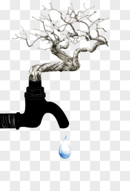 卡通手绘免抠开着的水龙头元素