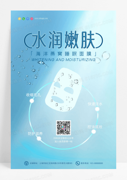 蓝色海洋美白补水清爽睡眠面膜化妆品海报
