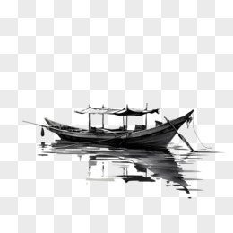水墨插画渔船免抠素材