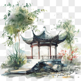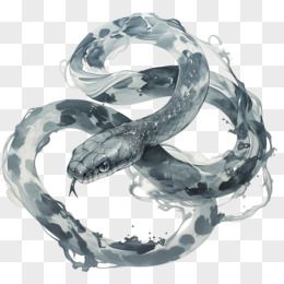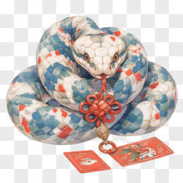卡通水墨风蛇年中国元素中国结和蛇免抠元素