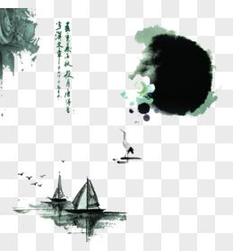水墨风竹筏免抠元素
