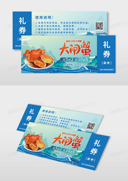 天蓝色水墨插画高级感大闸蟹礼劵大闸蟹礼券设计