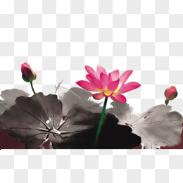 手绘水墨水彩水粉美丽的莲花免抠元素