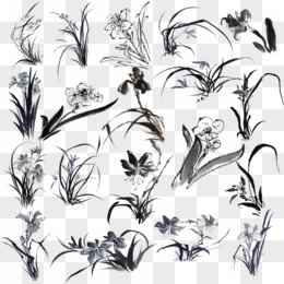 唯美山水画风格水仙花植物笔墨边框免扣元素