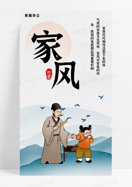 家风复古水墨风家风家训手机海报家风手机海报模板