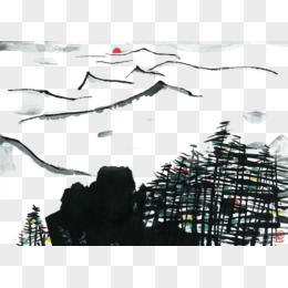 黑色水墨画山丘