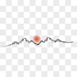 水墨画山与太阳