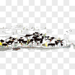 手绘水墨小村庄