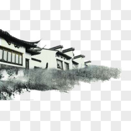 手绘水墨画房子免抠元素