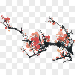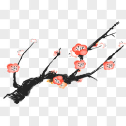 红色手绘水墨梅花树枝