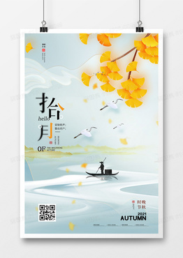 水墨中国风你好十月月份问候海报设计
