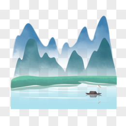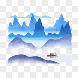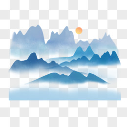 一组国潮风手绘书卷水墨山川插画套图合集元素二