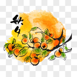 水墨水彩笔触山水画风格植物柿子边框免扣元素