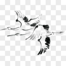 手绘水墨仙鹤装饰