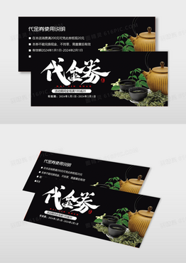 创意高端茶馆代金券模版