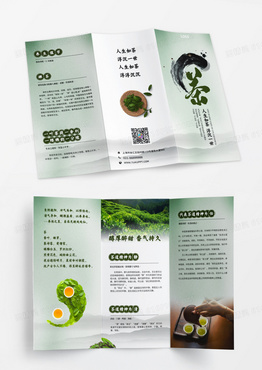 青色水墨风茶道文化茶文化三折页茶叶