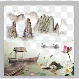 穿蓑衣戴斗笠的人划竹筏剪影素材