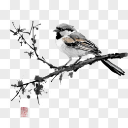 水墨风麻雀免抠元素