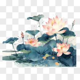 古风荷花水墨免抠元素