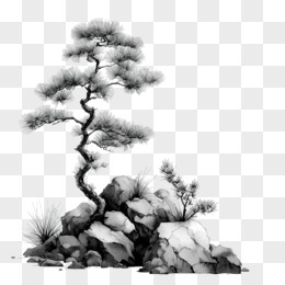 水墨风植物松柏免抠元素