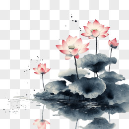 水墨风植物荷花免抠元素