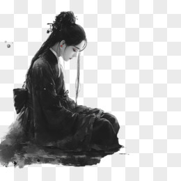 水墨风古代人物婢女免抠元素