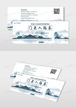 深蓝色山水背景自然景观园博会门票入场券