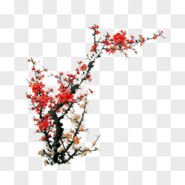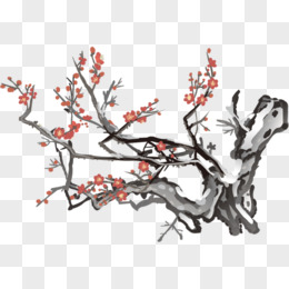 红色中国风水墨冬季植物红梅梅花花朵png免抠