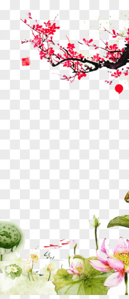 水墨梅花荷花背景