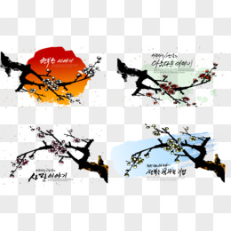 水墨梅花素材彩色墨迹素材