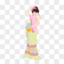 手绘免抠傣族女孩泼水元素