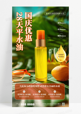 橙色简约中国风国庆优惠水乳套装护肤美妆海报