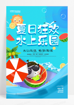 手绘卡通水上乐园玩水元素
