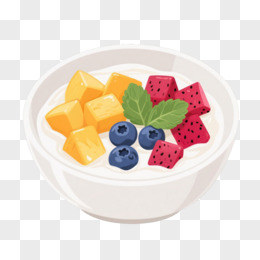 手绘卡通一个白碗里放着芒果火龙果水果捞免抠元素