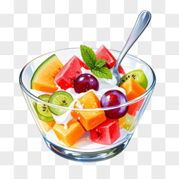 手绘卡通一个玻璃碗里放着水果捞免抠元素
