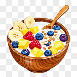 手绘卡通一个木碗里放着香蕉水果捞免抠元素
