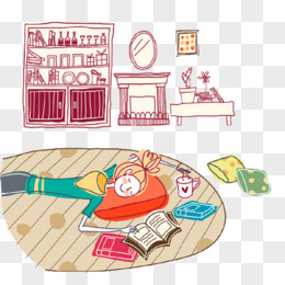 手绘插画女孩和宠物猫一起睡觉免抠素材