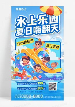 水上乐园泳池蓝色游乐园夏季玩水营销海报长图海报