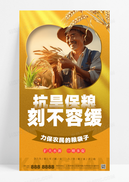 黄色抗旱保粮高温干旱抗灾减灾珍惜水源海报