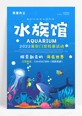 水族馆海洋馆暑假亲子游儿童乐园海报