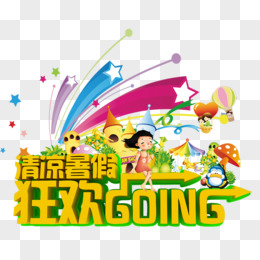 矢量膨胀风立体暑假快乐出行艺术字设计