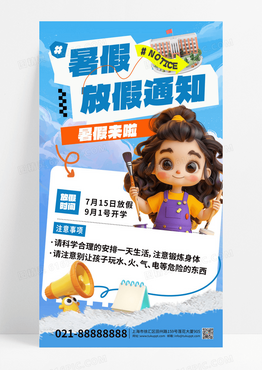 暑假来啦放假通知学校喇叭蓝色简约创意海报