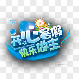矢量膨胀风立体暑假快乐出行艺术字设计