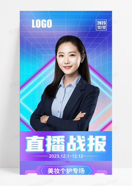紫色AI人物主播直播战报美妆直播数据手机长图直播战报长图
