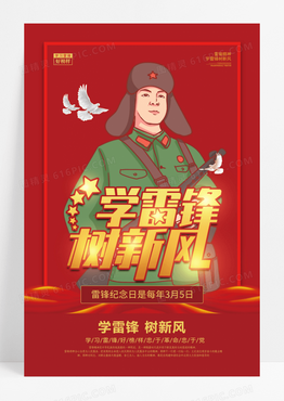 卡通手绘红色党建雷锋纪念日宣传海报学雷锋纪念日