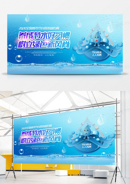 创意简约养成节水好习惯树立绿色新风尚全国城市节水周宣传展板