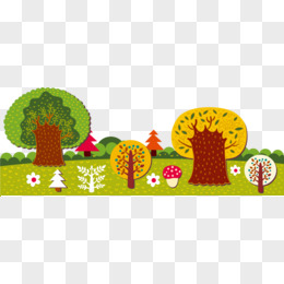手绘免抠剪纸风梦幻紫色树林免抠元素